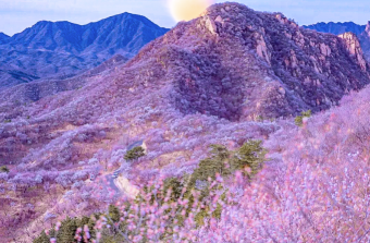满山遍野的山桃花摇曳生姿,