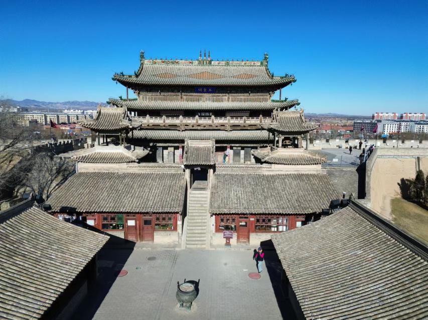 鼓楼:古城中心建筑,是蔚州古城标志性建筑之一,造型雄伟,起到报时、瞭望等作用。