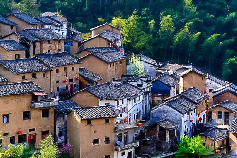 木坑方圆数十里均为大毛竹,茫茫竹海,阵阵绿波衬托着数十间白墙黑瓦的徽派楼舍。