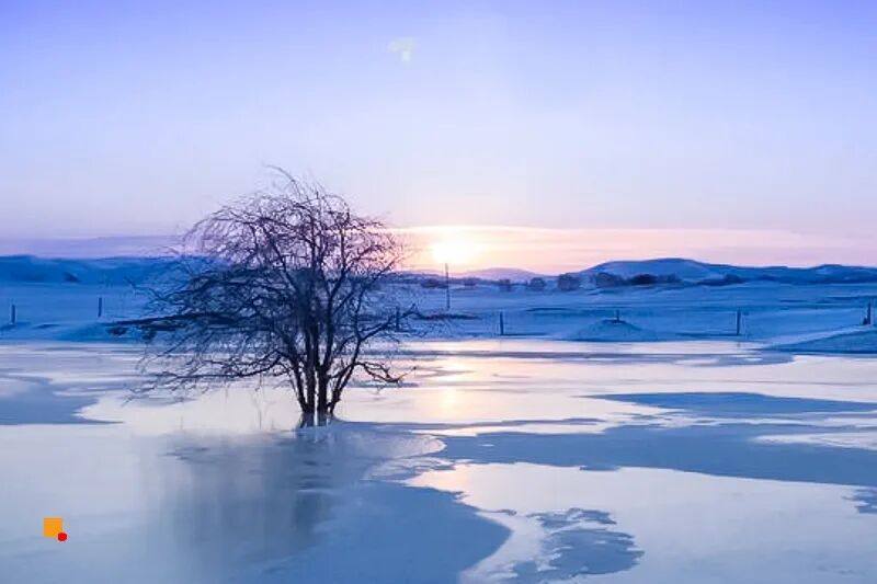 湖面结成了冰场,积雪厚度能达到膝盖以上,