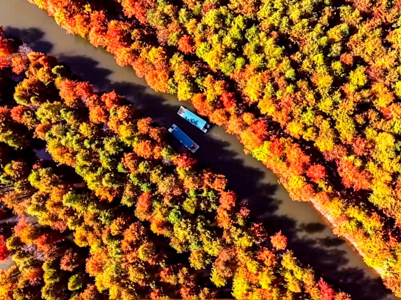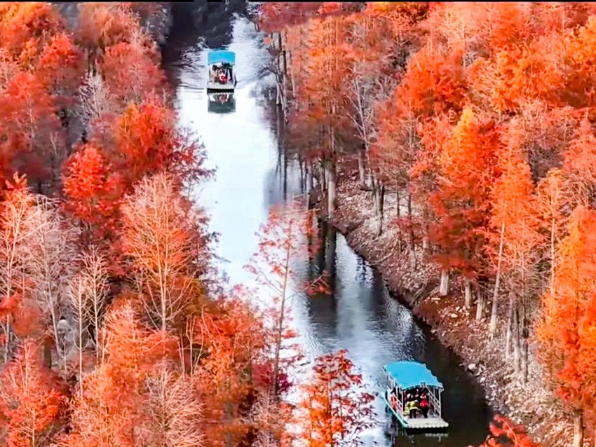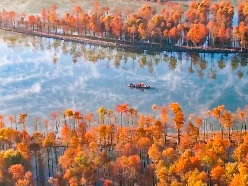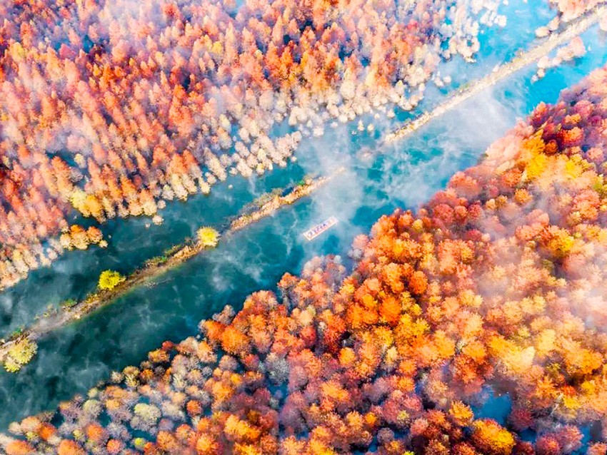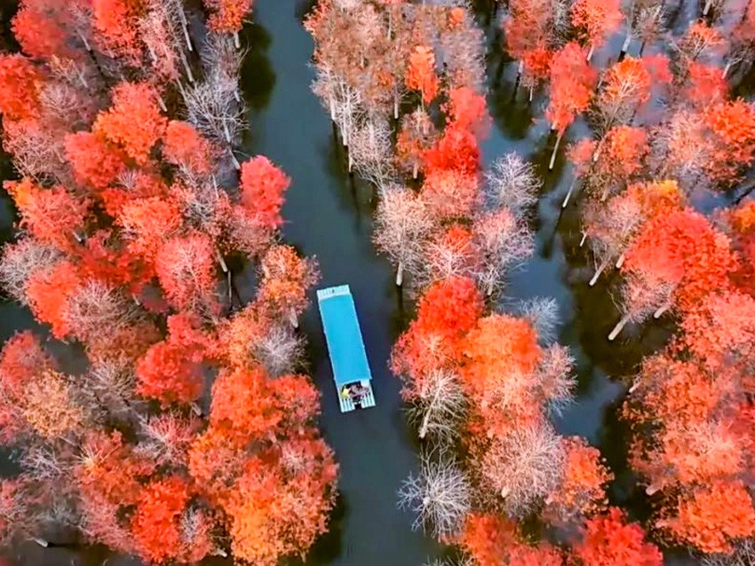 落羽杉湿地公园位于宁国市青龙湾水库上游方塘乡境内,沿着浅浅的湾流,两千余亩落羽杉(红杉林)错落有致地立在水中,与宽广碧绿的水面相互映衬。每到深秋,红杉林渐次变红,各种颜色相互交织着,色彩绚丽,宛如皖。树林里,游船穿梭,南的“喀纳斯”水光舟影,如诗如画,美不胜收。游览秋色落羽杉公园的最佳时间是每年的11月下旬至12月上旬。
