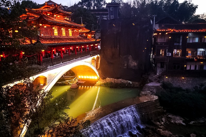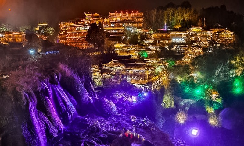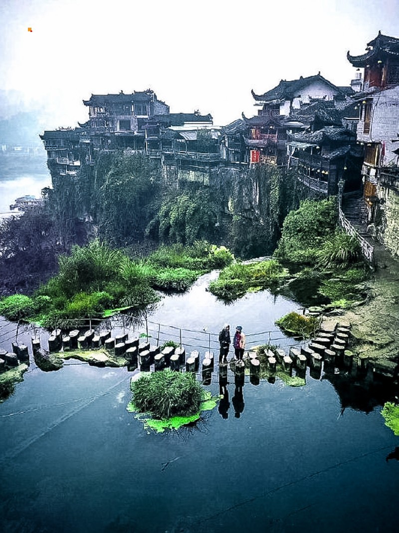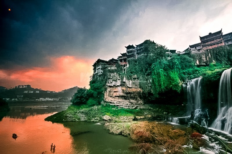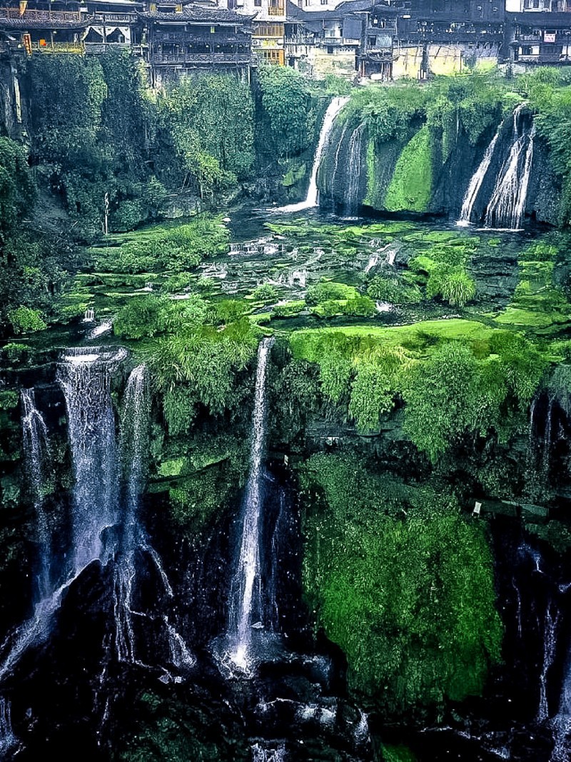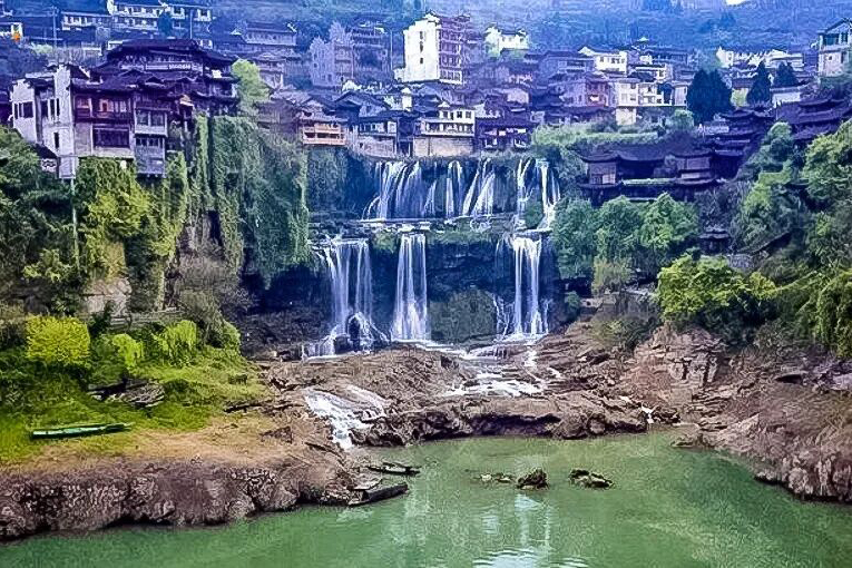 挂在瀑布上的千年古镇